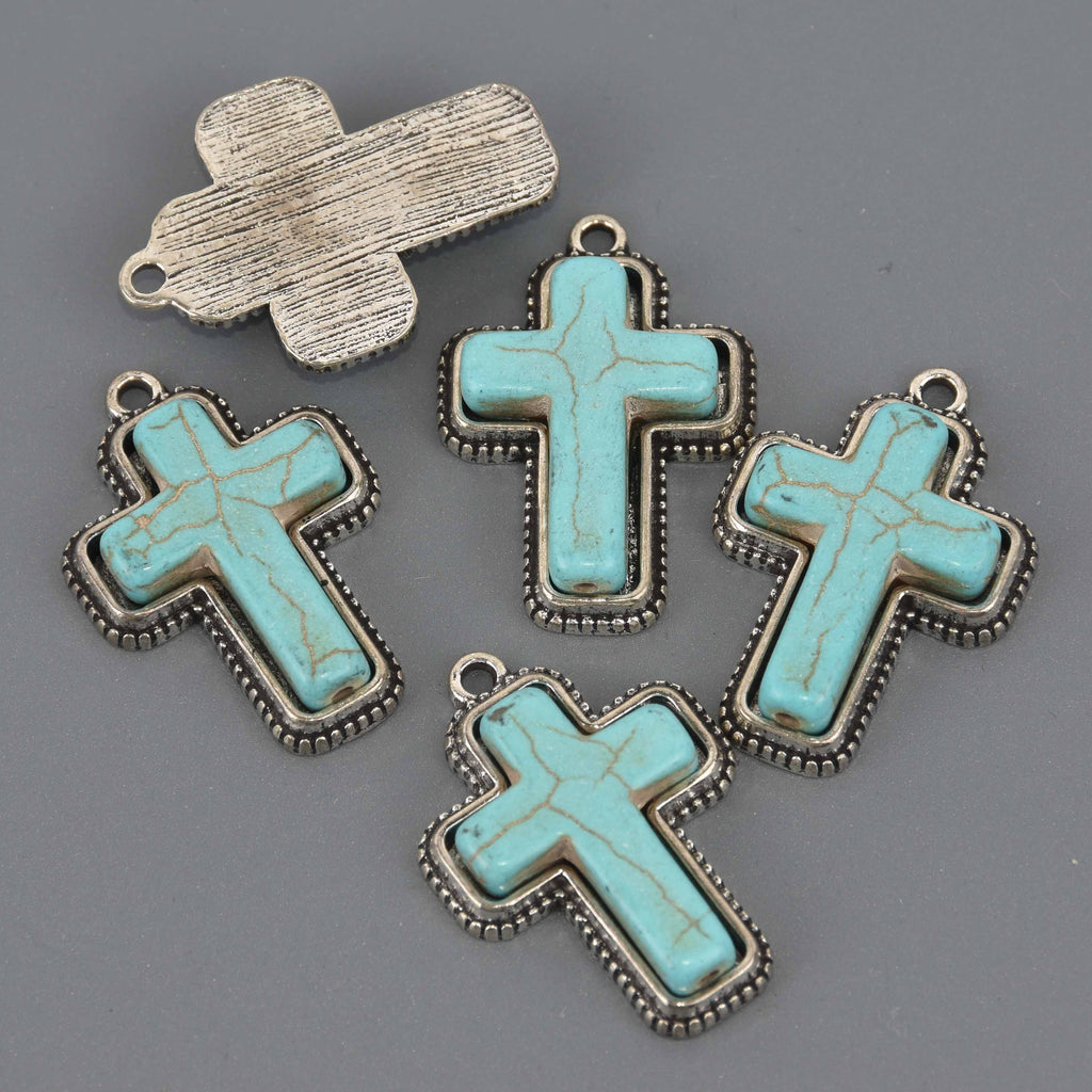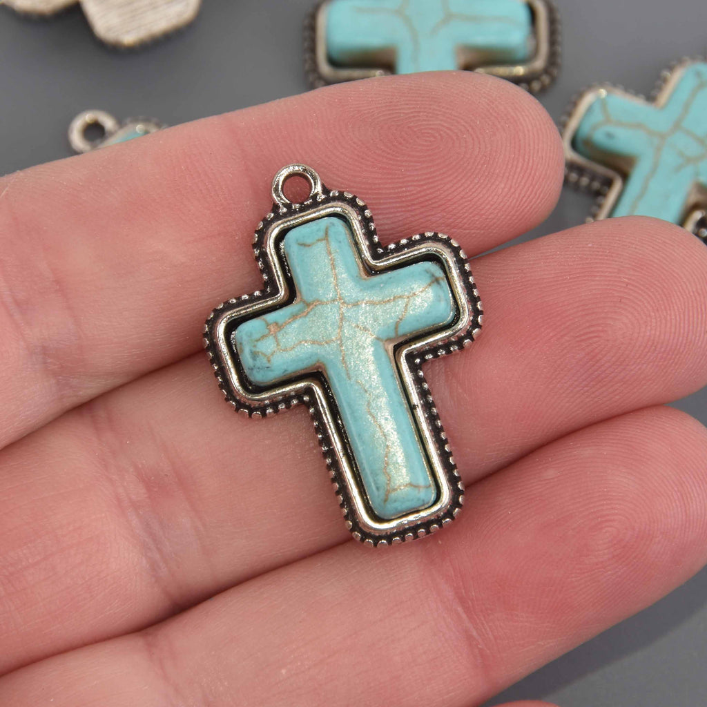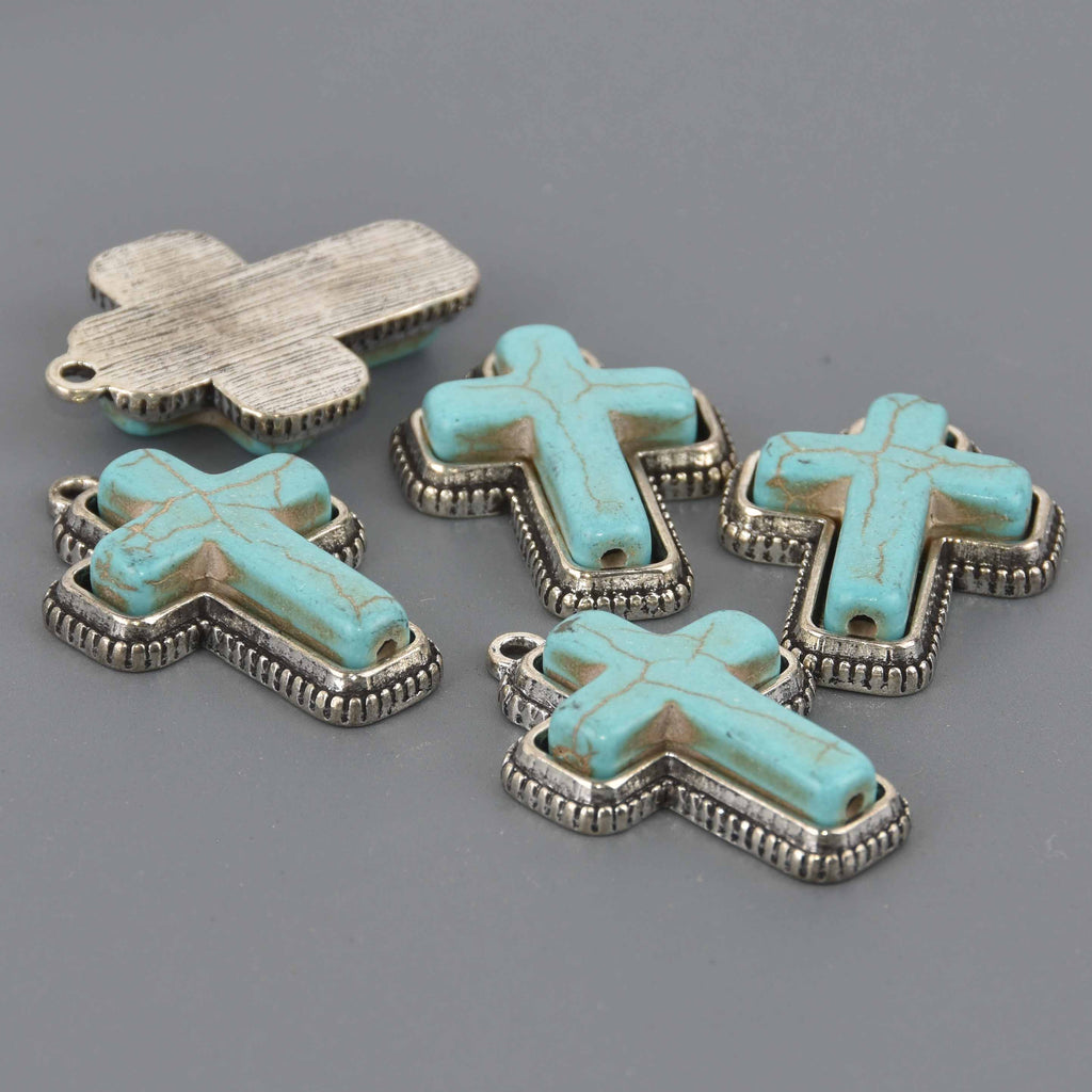 Boho Silver Cross Charms, faux turquoise, chs8650