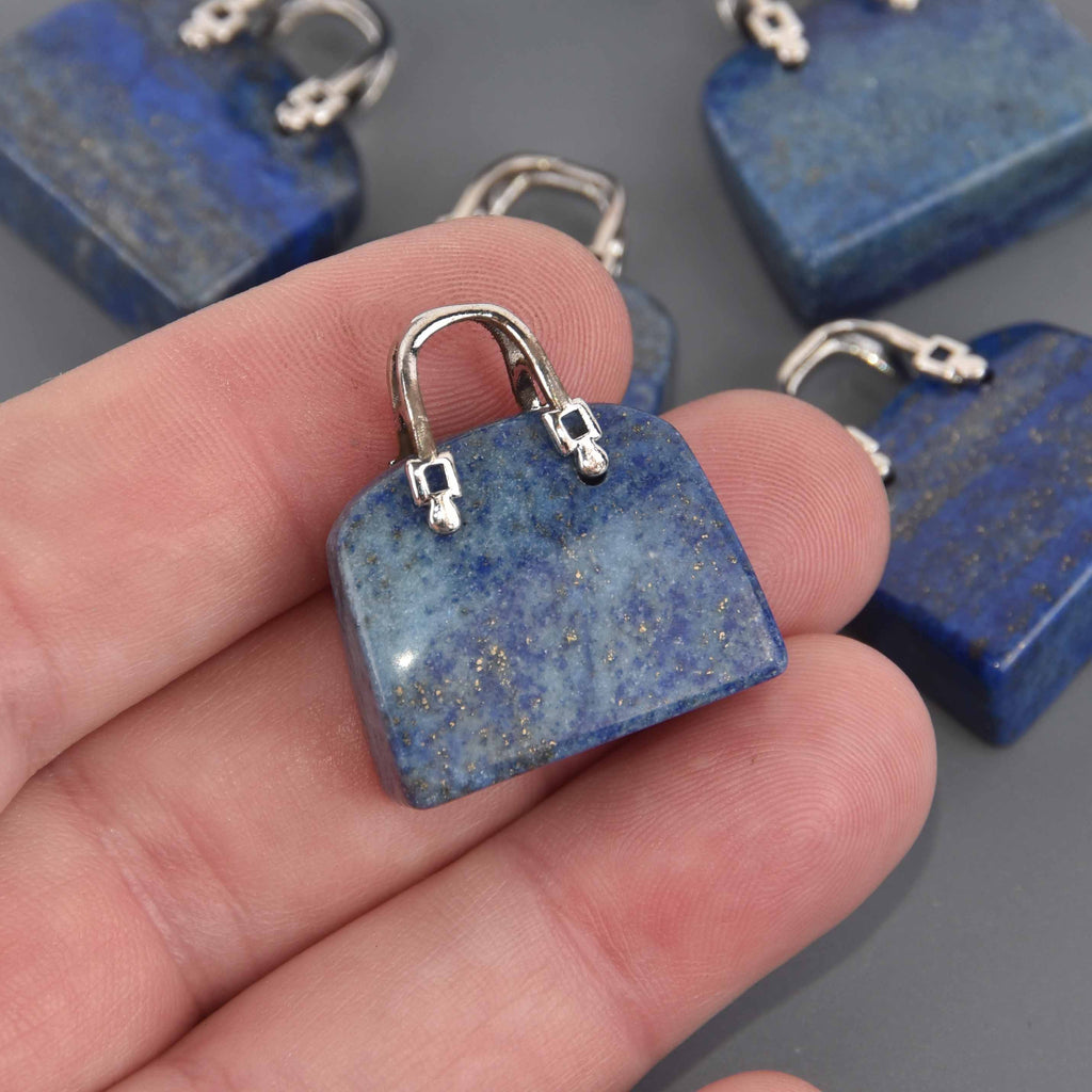 Gemstone Purse Handbag Charms, Blue Lapis Lazuli with silver handle, chs8554
