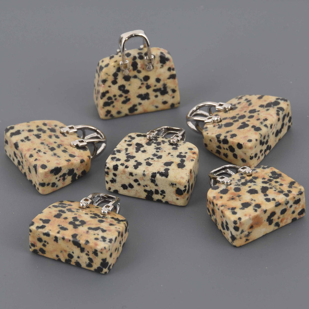 Gemstone Purse Handbag Charms, Dalmatian Jasper with silver handle, chs8559