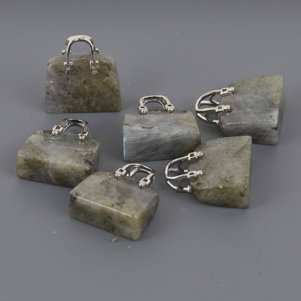 Gemstone Purse Handbag Charms, Labradorite with silver handle, chs8555