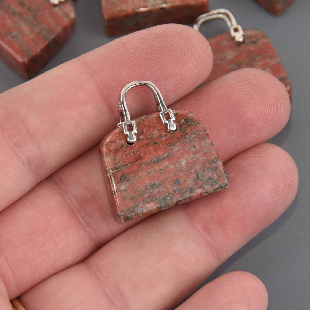 Gemstone Purse Handbag Charms, Red Jasper with silver handle, chs8556