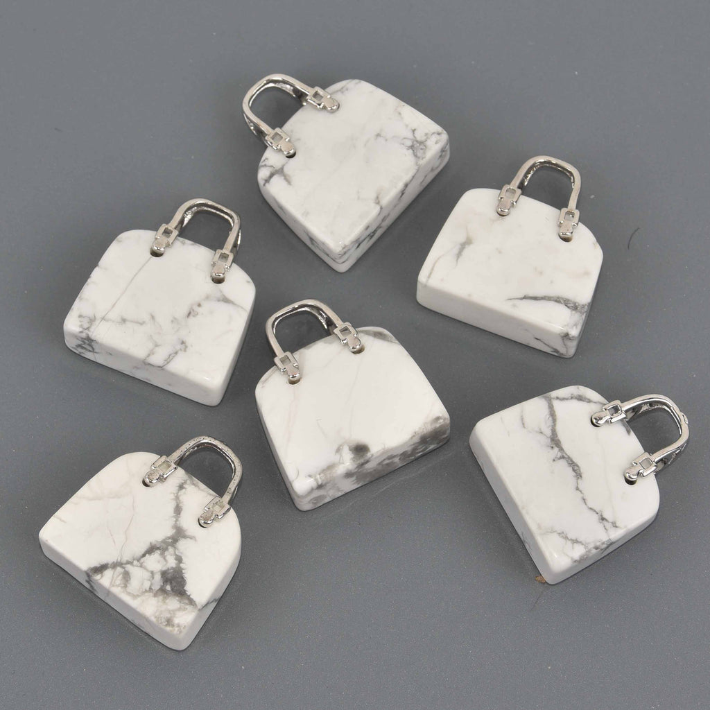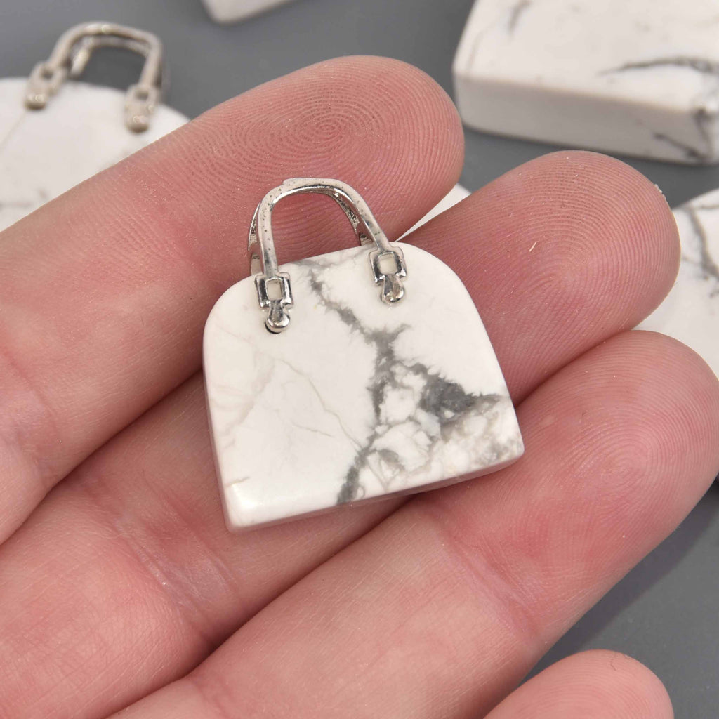 Gemstone Purse Handbag Charms, White Howlite with silver handle, chs8558
