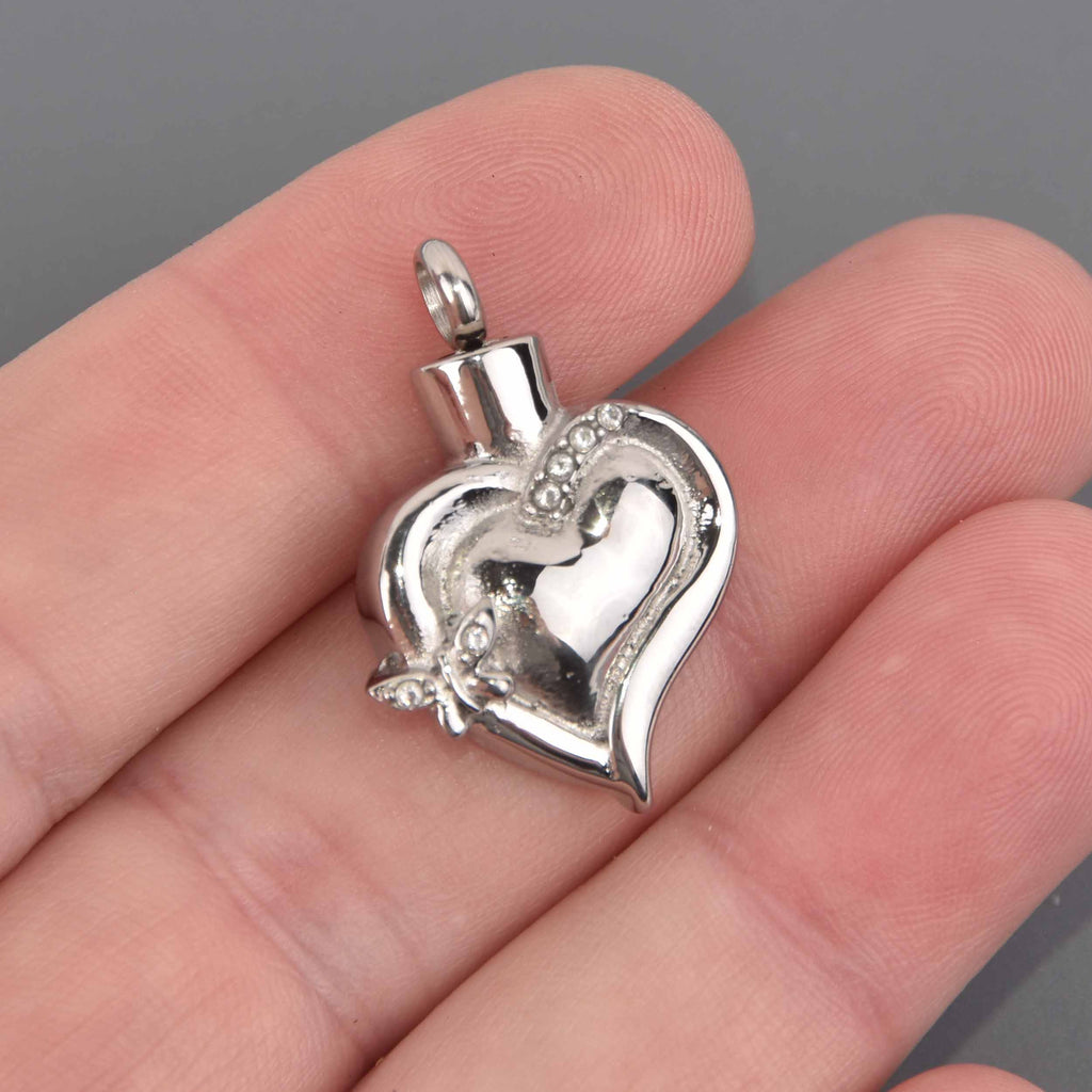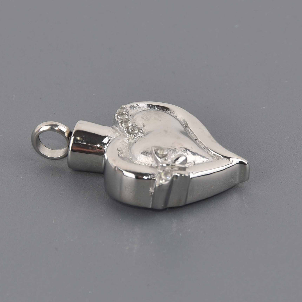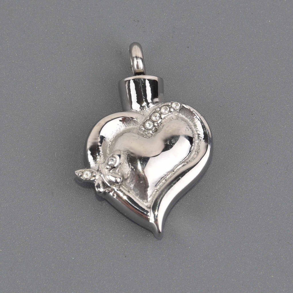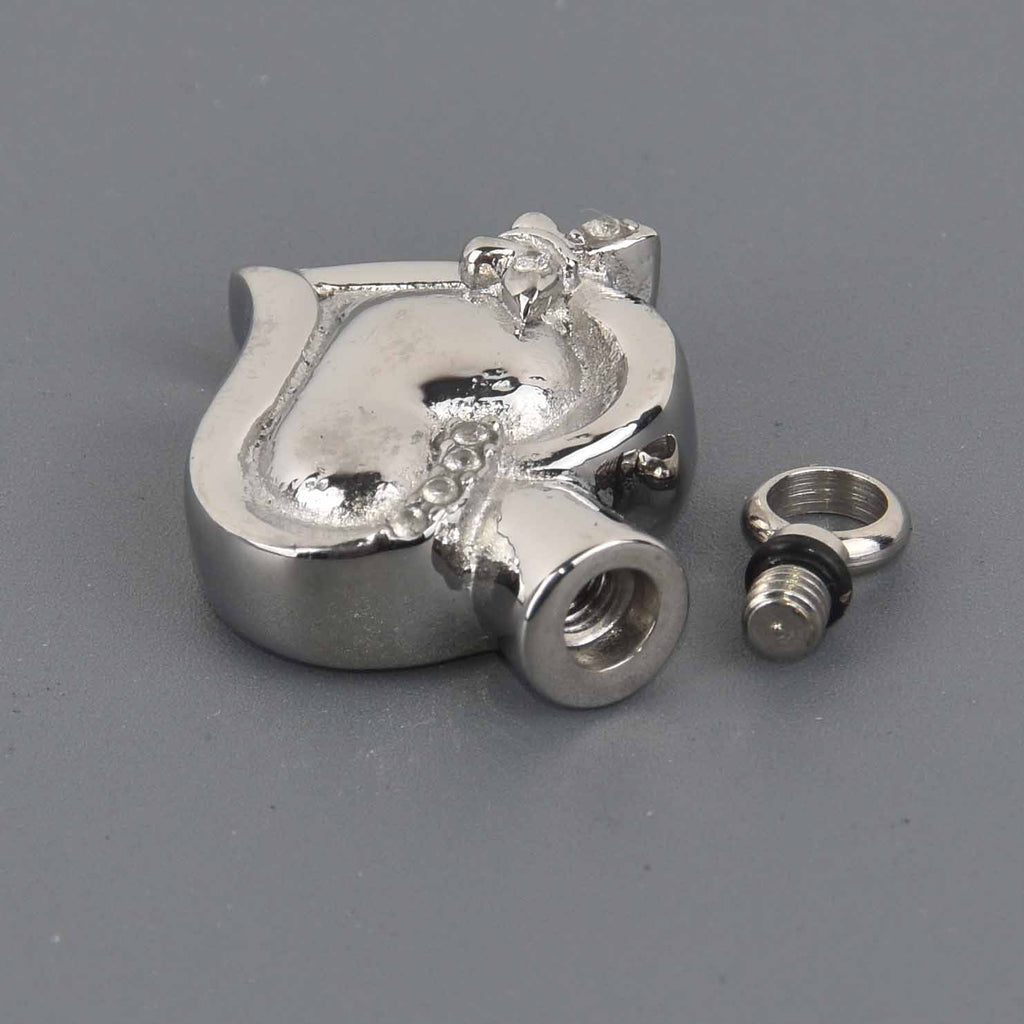 Keep your most precious loved one close to your heart with this beautiful titanium steel heart shaped cremation ash urn which features a lovely design and a bail which can be unscrewed to reveal the opening for the ashes.