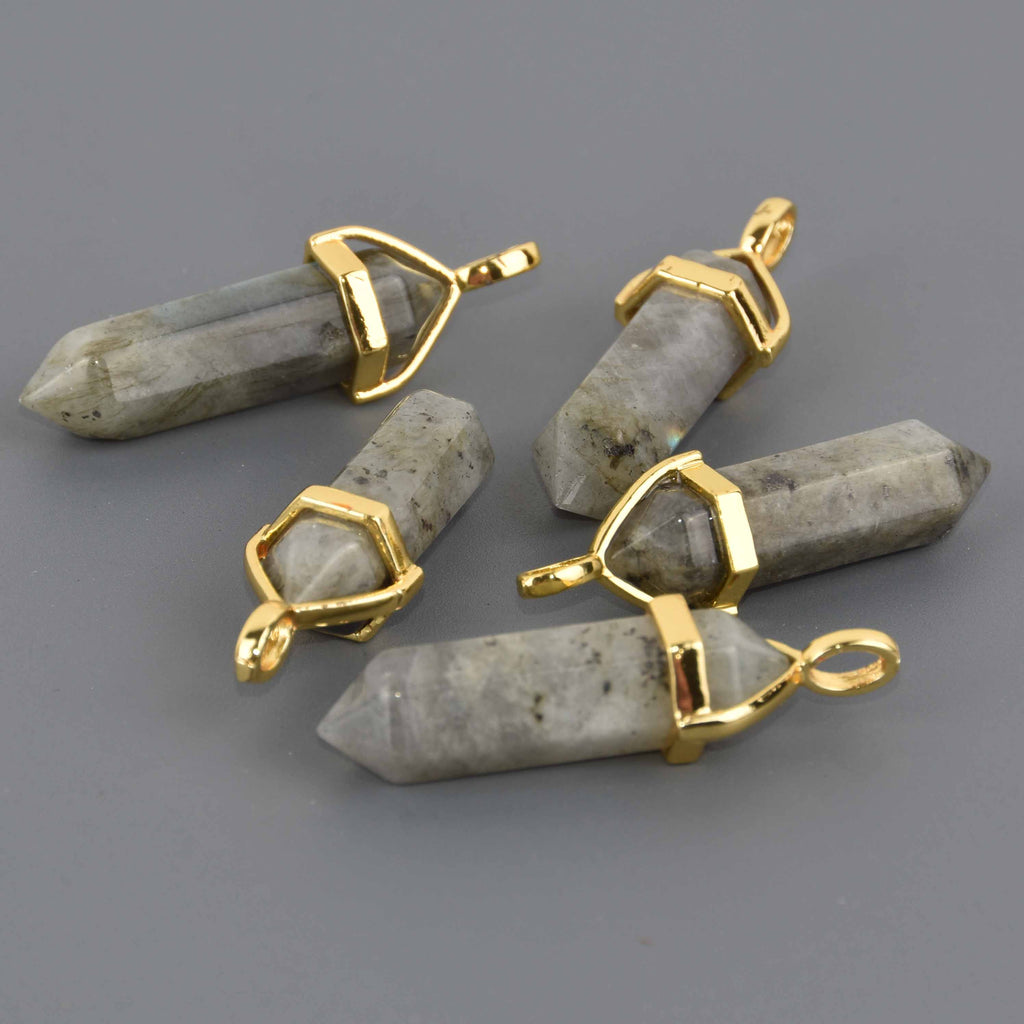1 Labradorite Charm, Gemstone Point Pendant, gold trim, 1.5", chs8586
