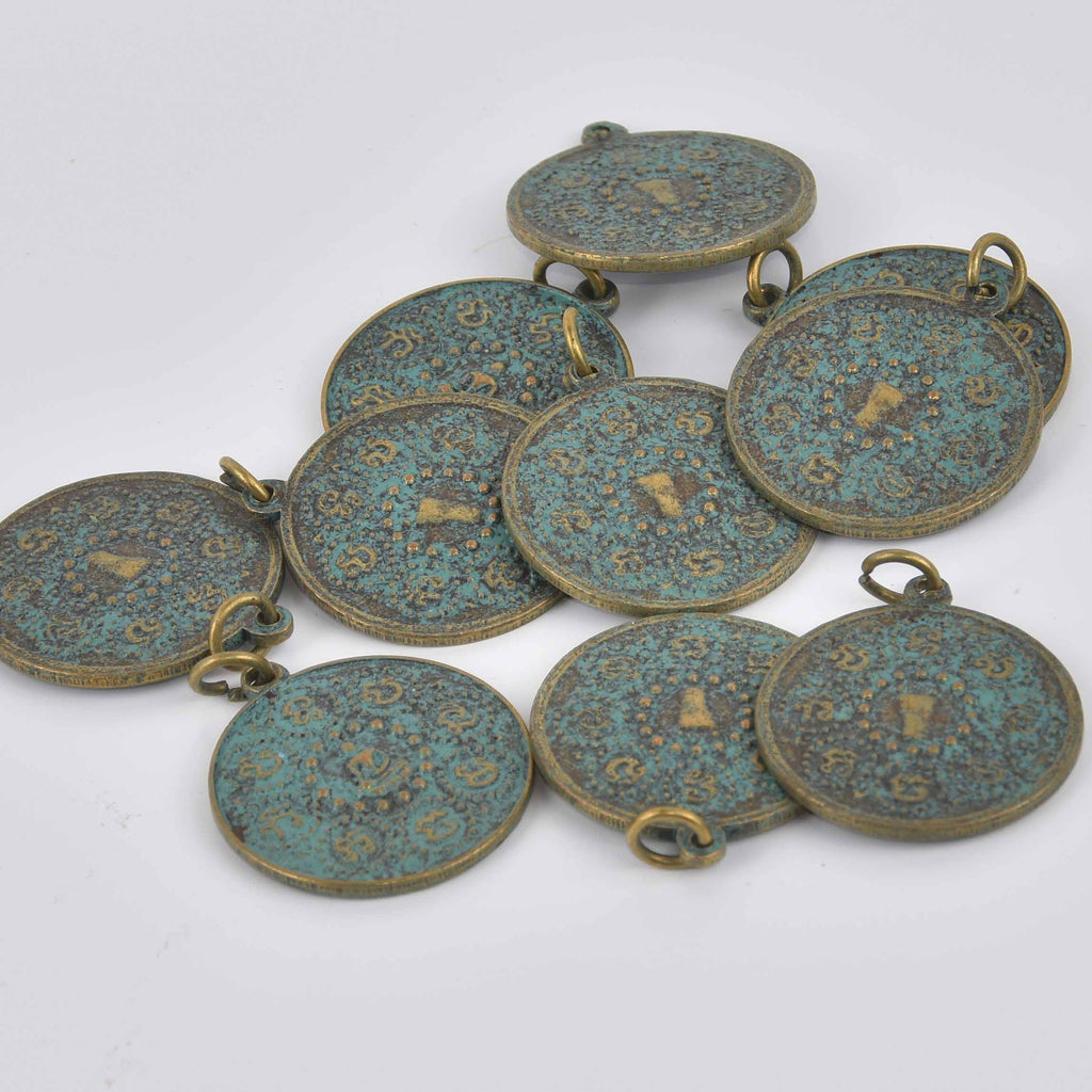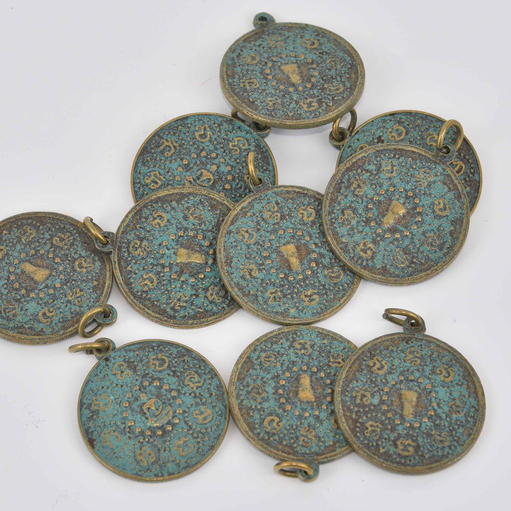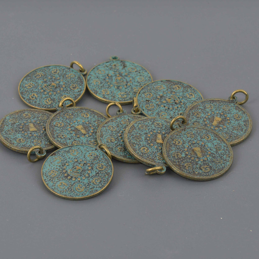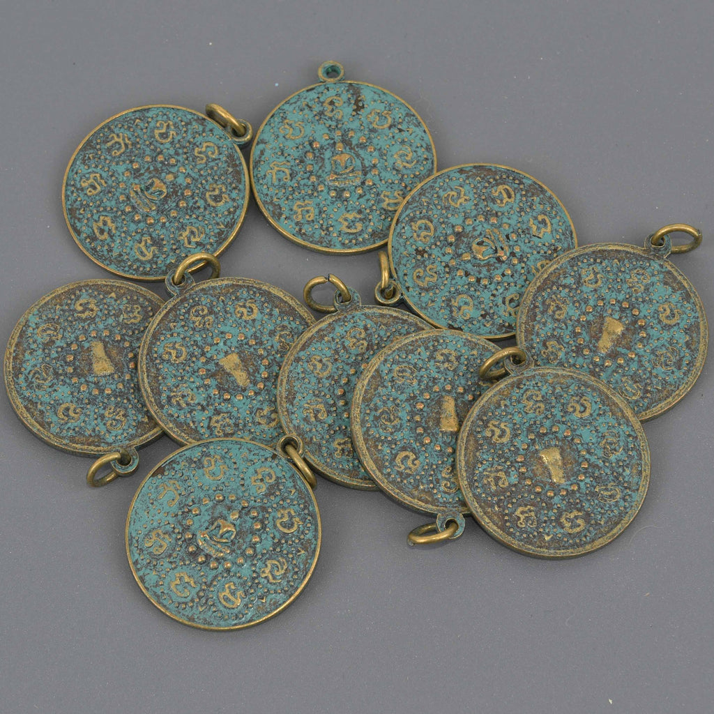 1 THAI BUDDHA Pendant Charm, Patina Circle Relic Pewter chs8542
