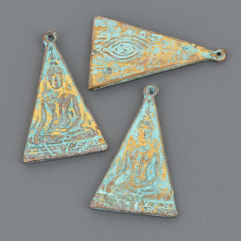1 THAI BUDDHA Pendant Charm, Patina Triangle Relic Pewter chs8570
