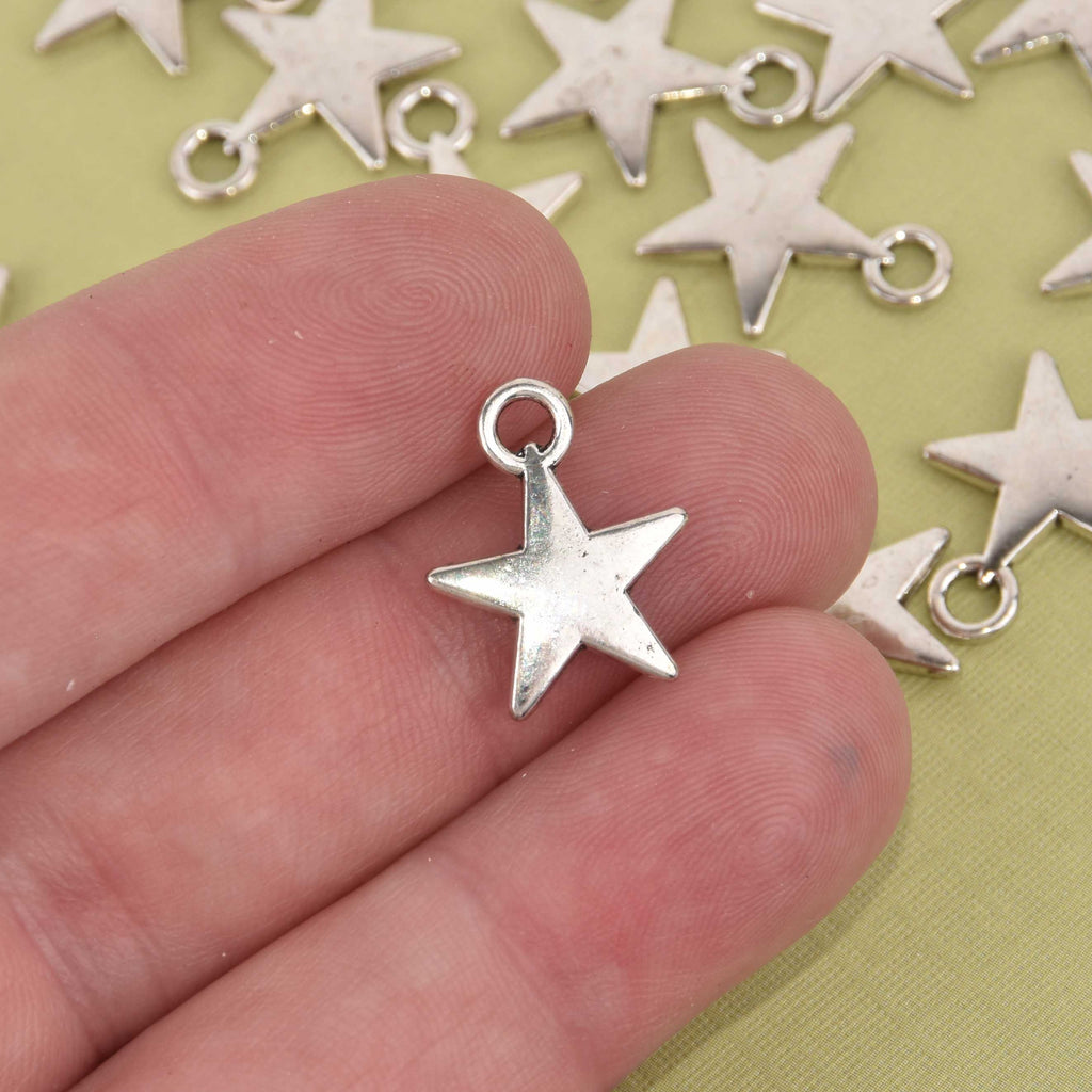 10 Silver Star Charms, 17x14mmm chs8527