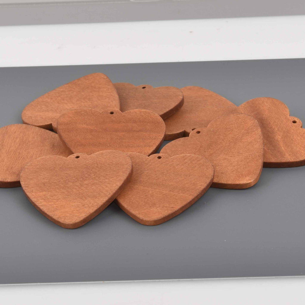 6 Wood Charms, Heart Pendant, 54mm, chs8538