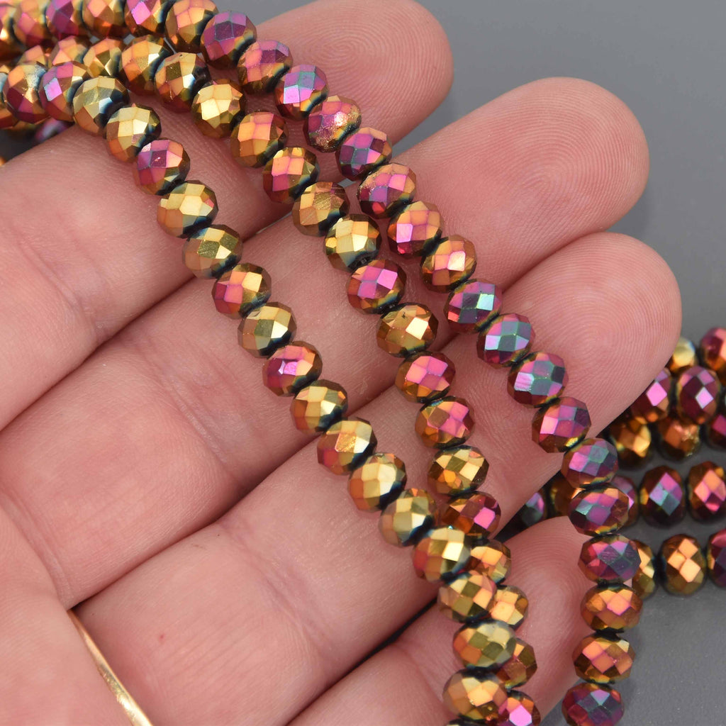 Rondelle beads are 6 x 4mm, vibrant color, beautifully faceted to catch the light and sparkle!