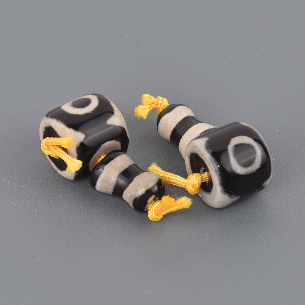 DZI AGATE Mala Beads, 3-hole Gemstone Guru Beads, top and bottom piece, gem0888