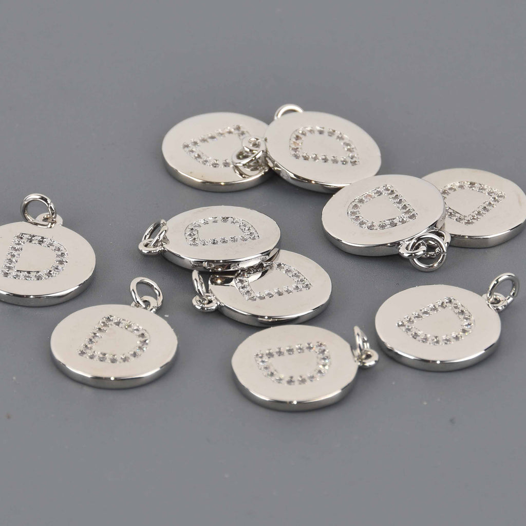 Letter D Crystal Alphabet Charm, Silver Plate, 15mm, chs8598