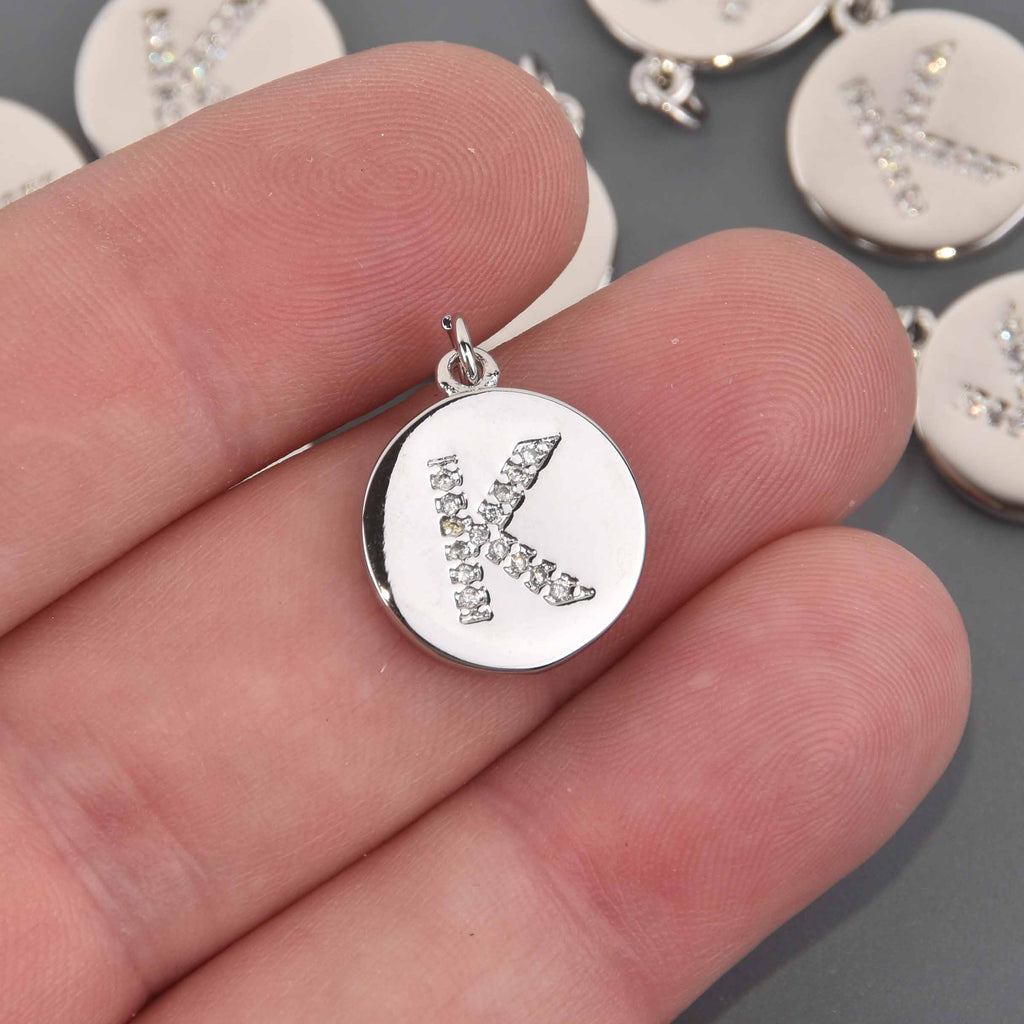 Gorgeous shiny silver plated charms with the monogram letter embedded in CZ crystals on the front.