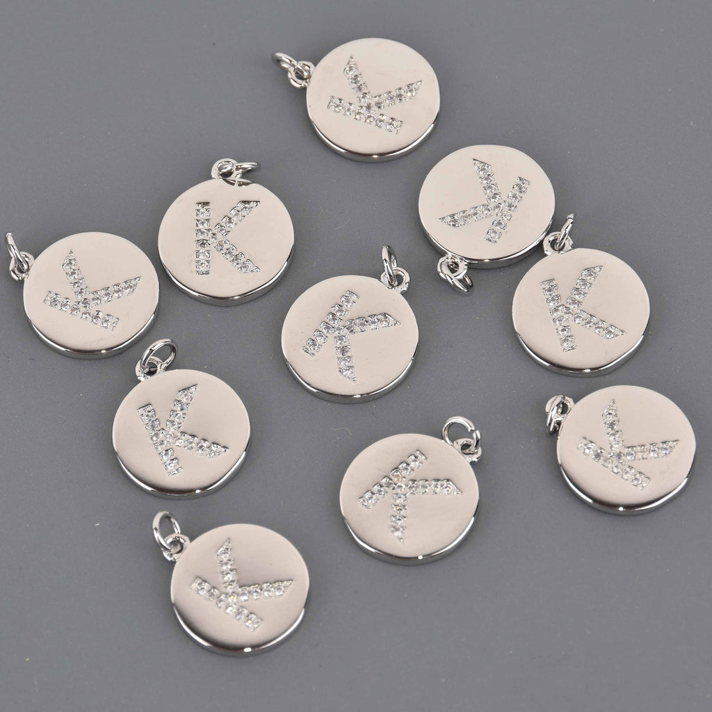 Letter K Crystal Alphabet Charm, Silver Plate, 15mm, chs8602