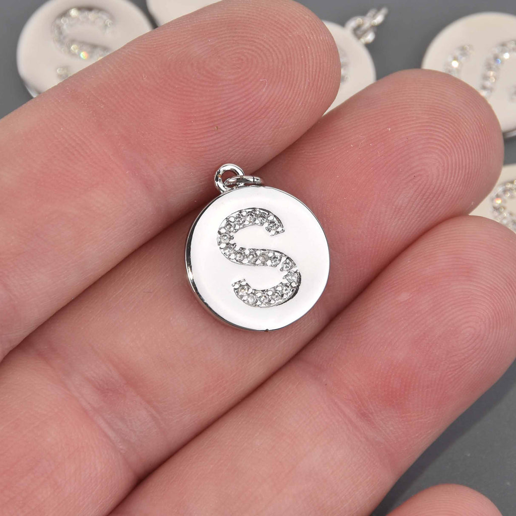 Gorgeous shiny silver plated charms with the monogram letter embedded in CZ crystals on the front.