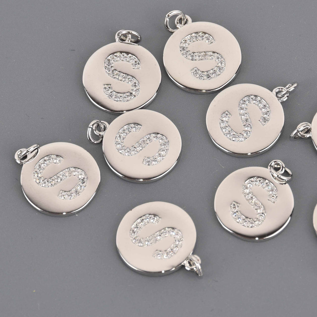 Letter S Crystal Alphabet Charm, Silver Plate, 15mm, chs8607