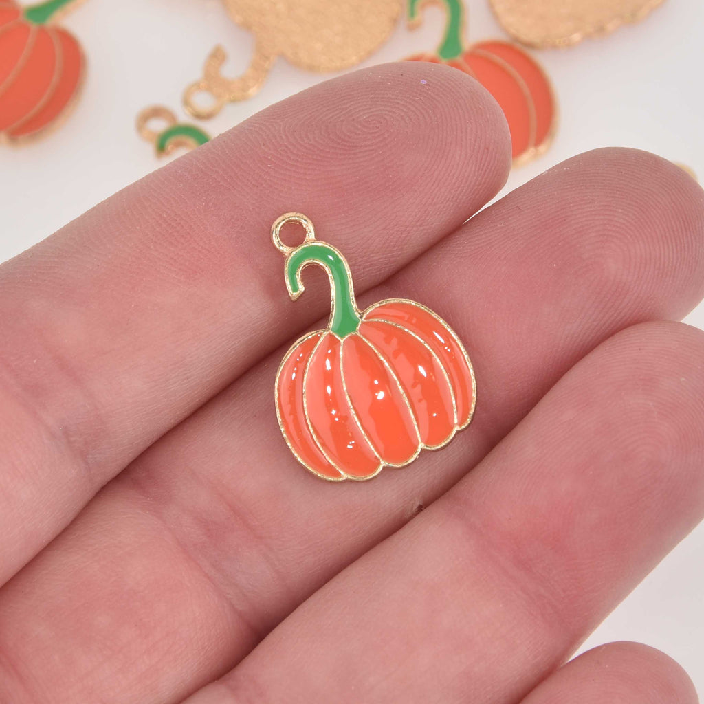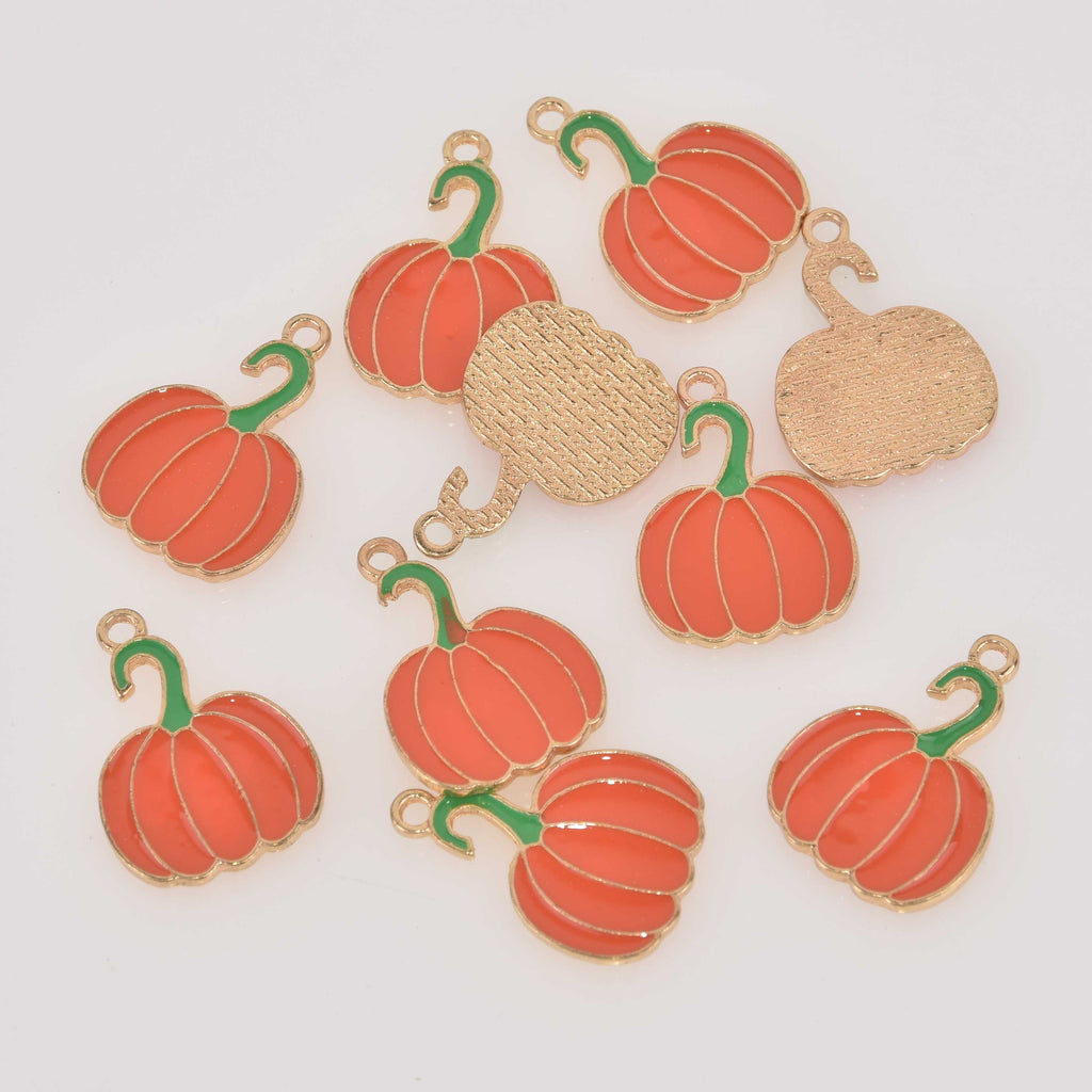Pumpkin Charms for Fall and Halloween, Enamel, gold plated, chs8516